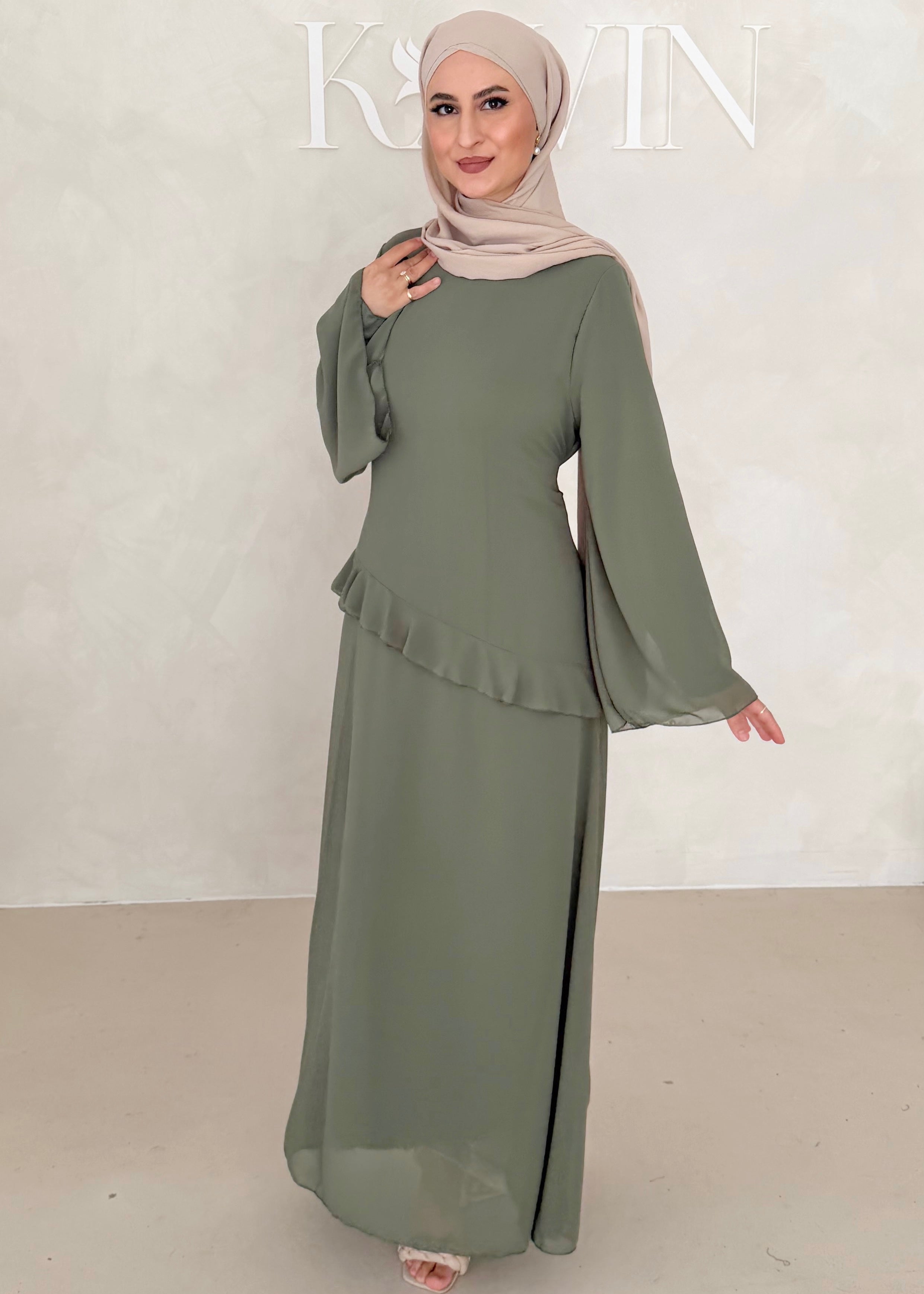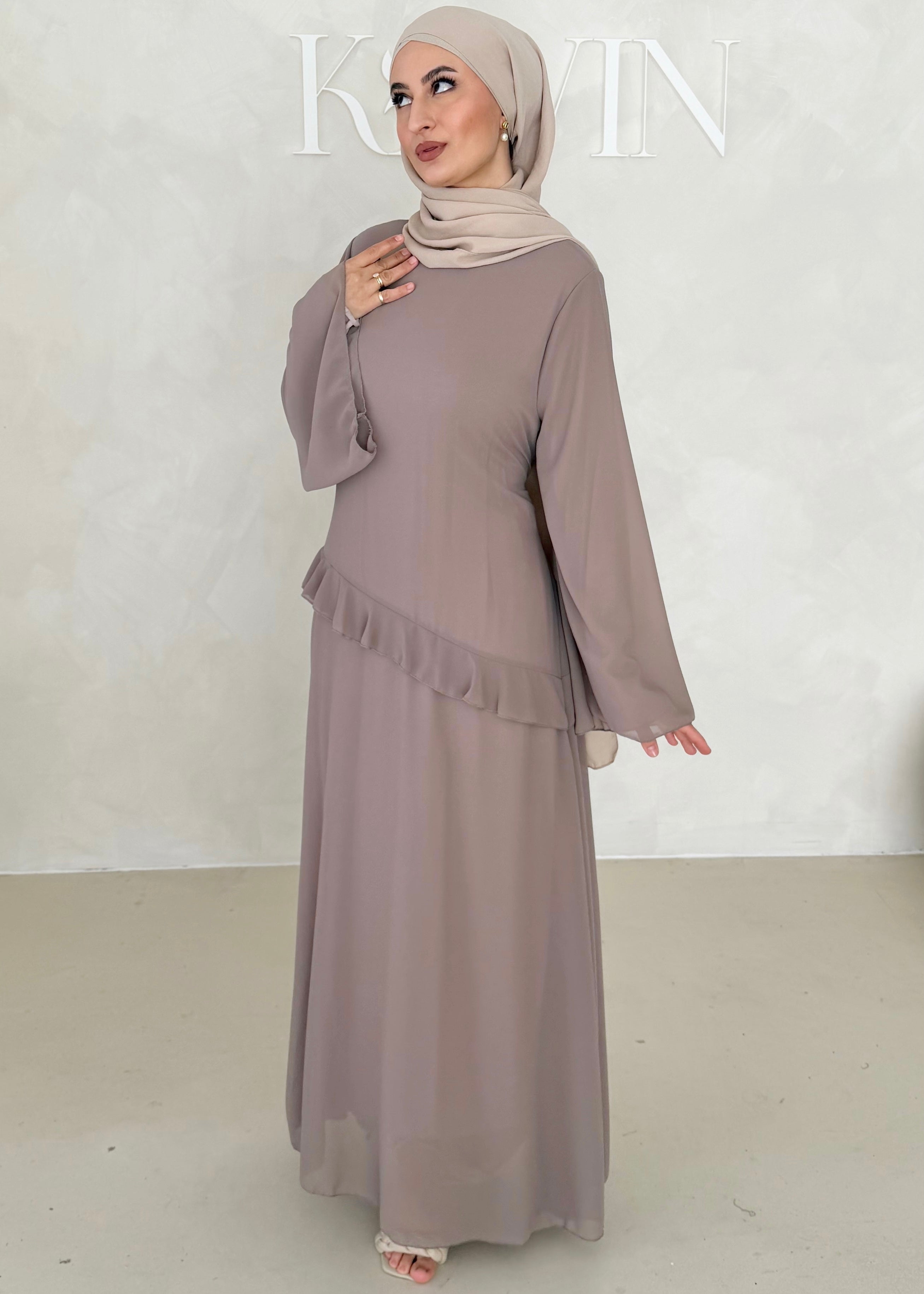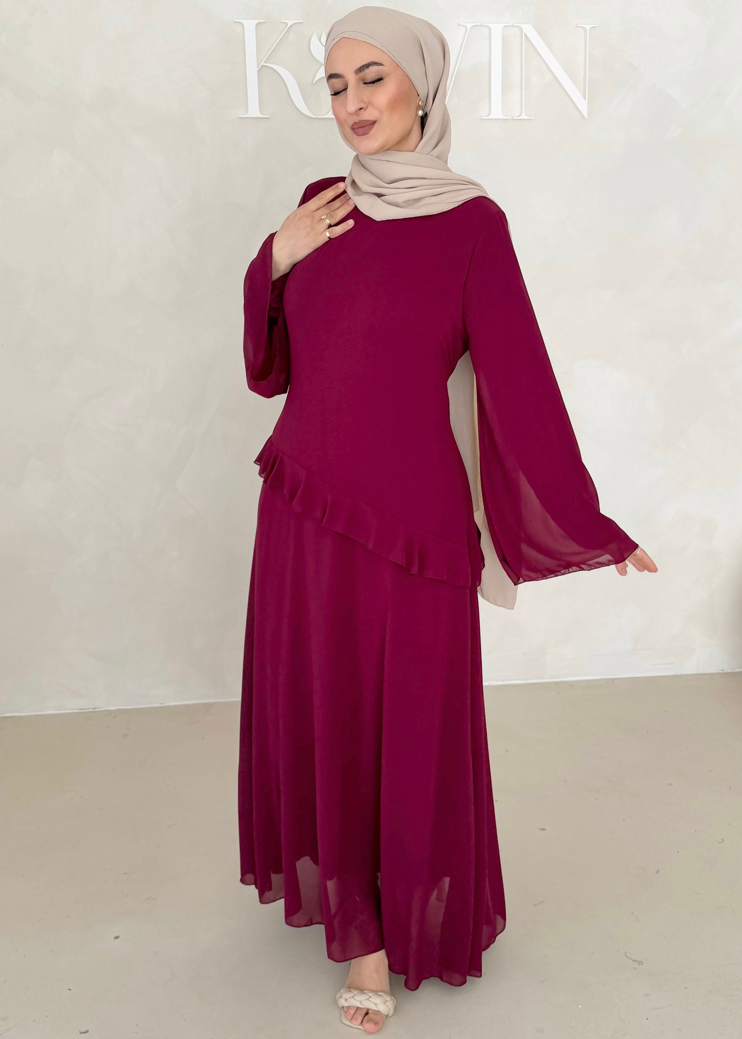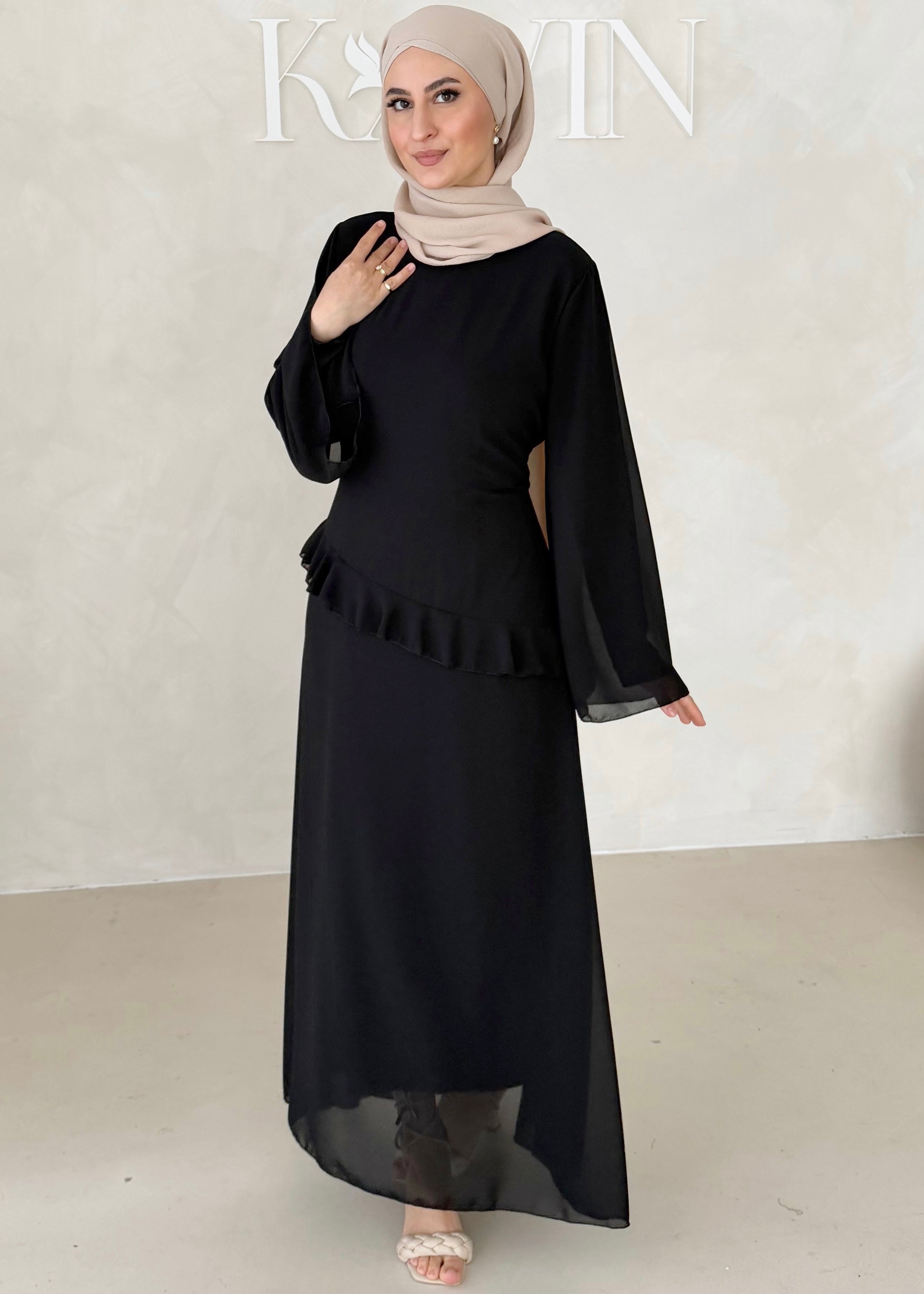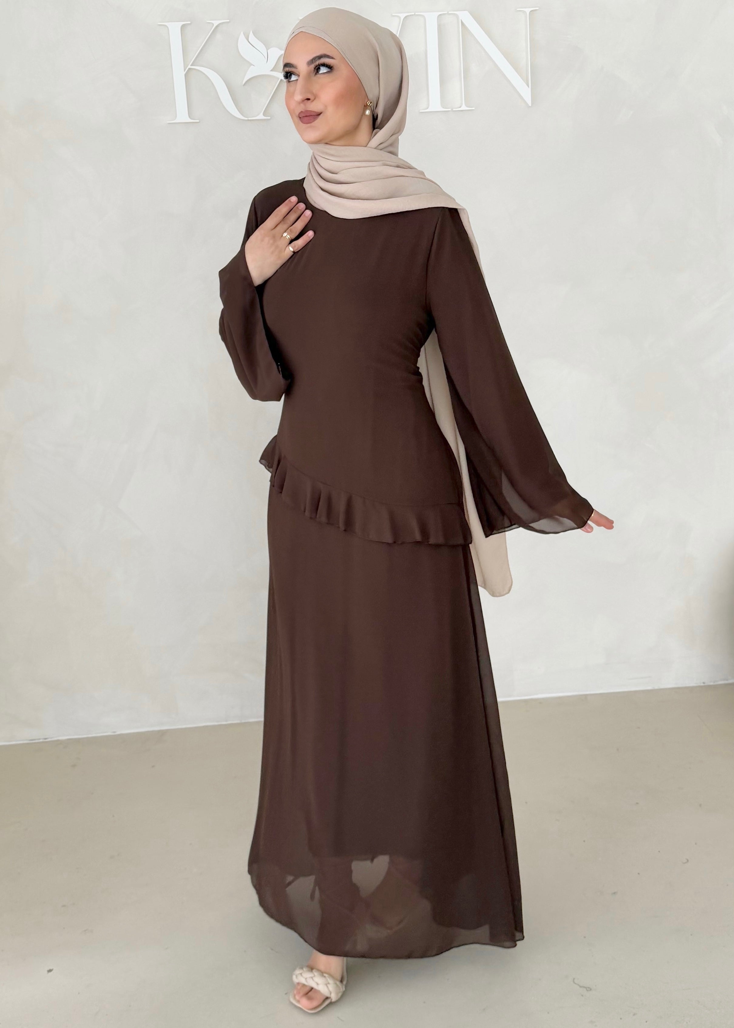 Chiffon Kleid mit Volant Details