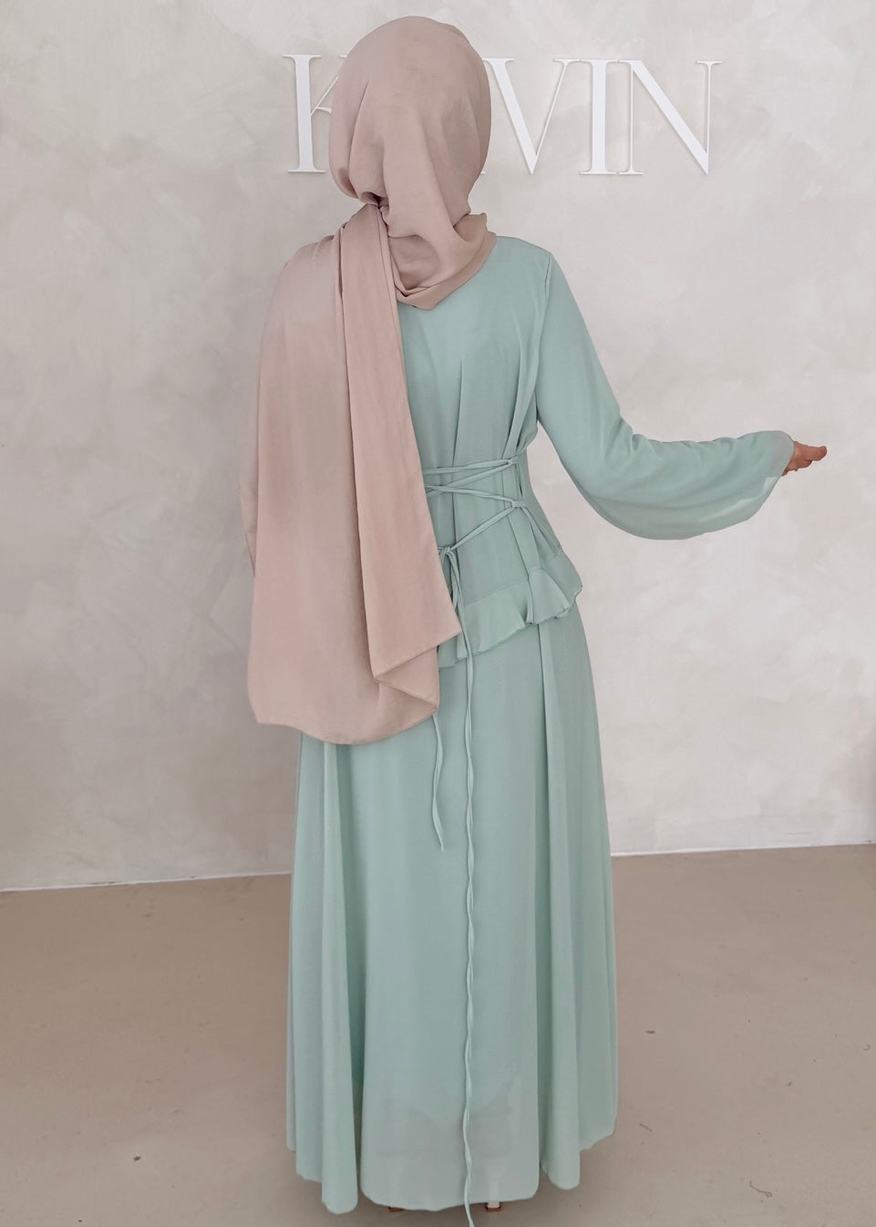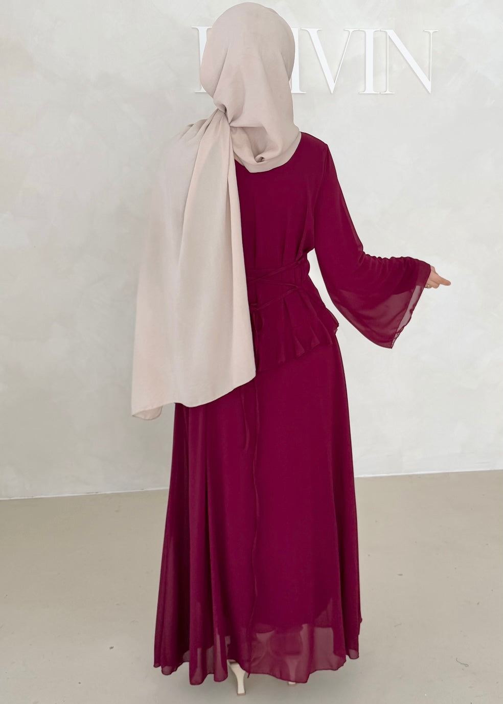 Die Länge des Kleides beträgt ca. 140 cm.
