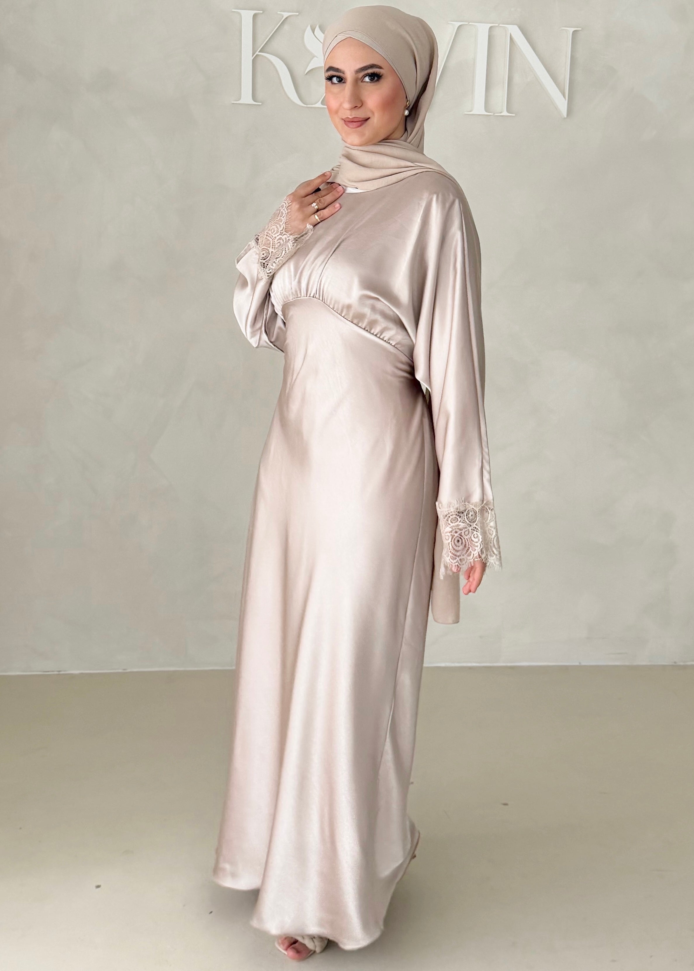 Die Länge des Kleides beträgt ca. 140 cm.